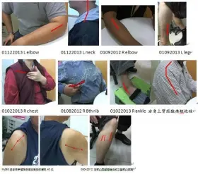 (照片1左下角)為M♂58歲曾丟手榴彈受傷之後右肩一投棒球就痛已30~40年,經修補之後就不疼了。