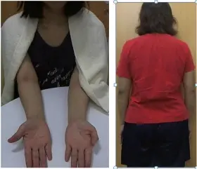 (照片4的右下圖): L女63歲主訴:右肩痛,已3個月。常嗜睡頻打哈欠,右手指麻,右肩肩胛骨內不舒,聲音粗沙啞,常發出清痰聲。